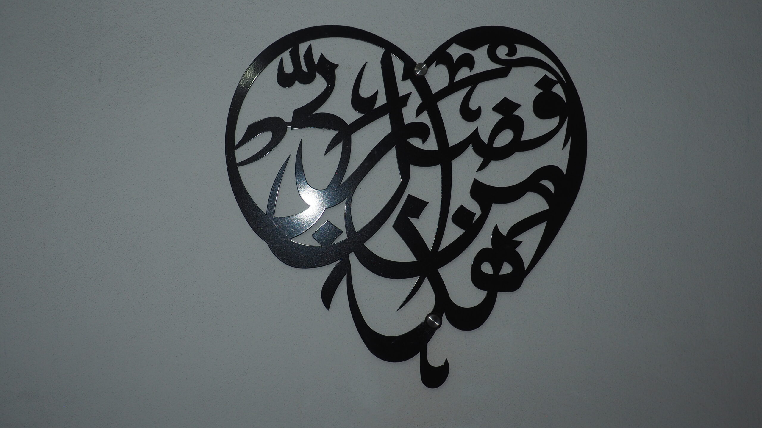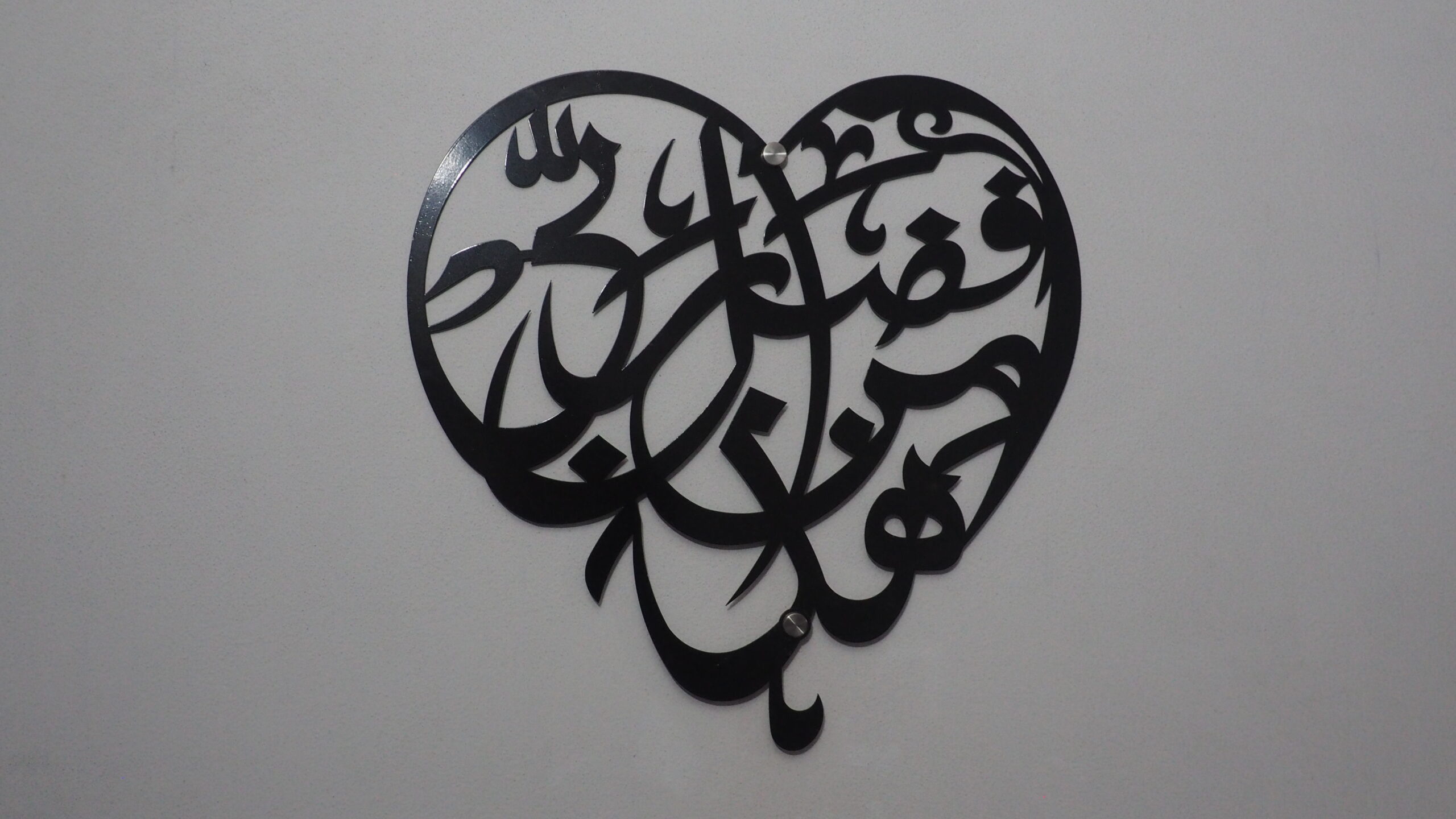 Heart Shaped metal Haza Min Fazli Rabbi for Islamic Wall art.